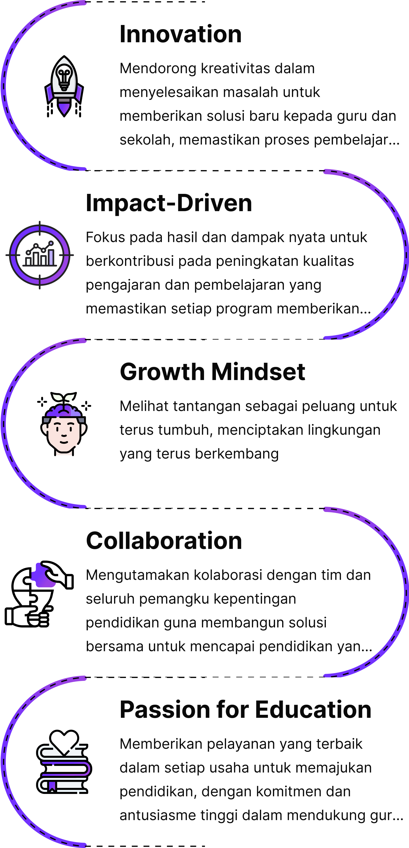 Menjadi platform terdepan dalam meningkatkan kompetensi guru dan menciptakan lingkungan belajar yang inovatif, adaptif, dan berpusat pada pengembangan peserta didik