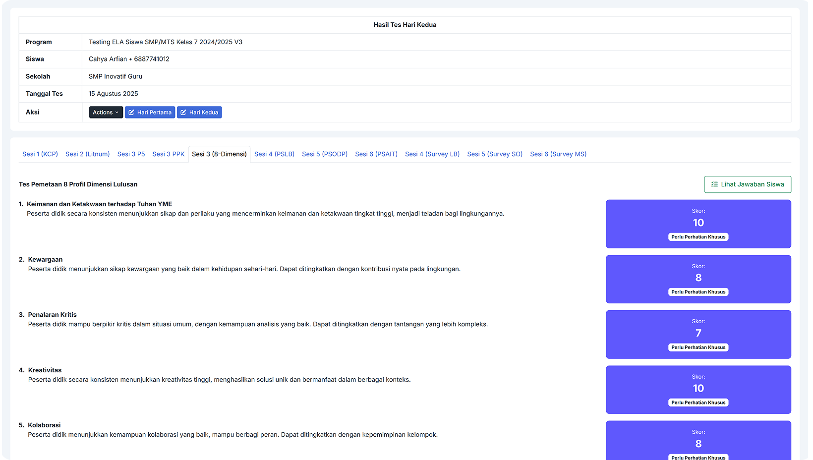 3.Sekolah dapat mengidentifikasi kebutuhan dan kondisi siswa melalui dimensi