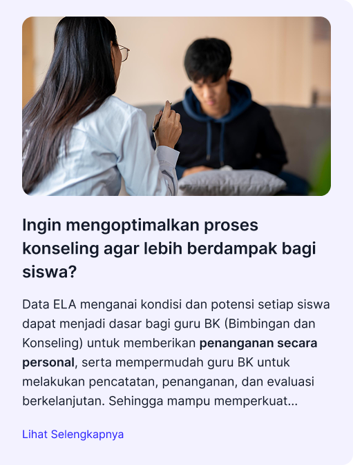 Data ELA mengenai kondisi dan potensi setiap siswa dapat menjadi dasar bagi guru BK untuk memberikan penanganan secara personal, serta mempermudah guru BK untuk melakukan pencatatan, penanganan, dan evaluasi berkelanjutan. Sehingga mampu memperkuat kapasitas guru BK melalui kolaborasi bersama guru kelas, wali kelas, maupun orang tua untuk mendukung proses belajar siswa secara optimal.